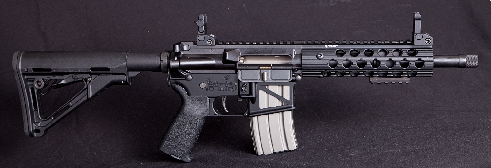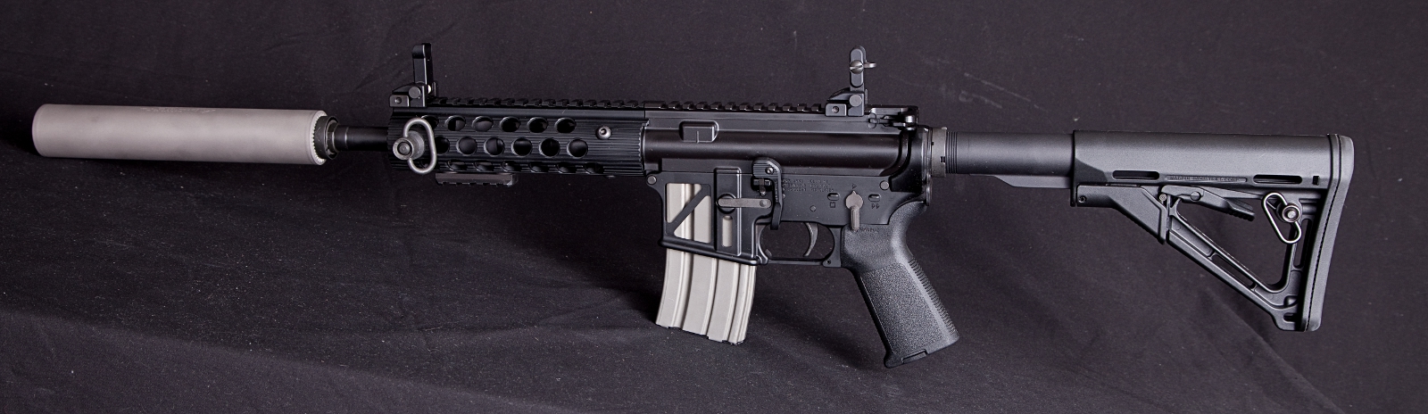 Custom receiver, Custom 10" 300 Blackout barrel, supressor ready, select fire, YHM rail, Magpul stock.