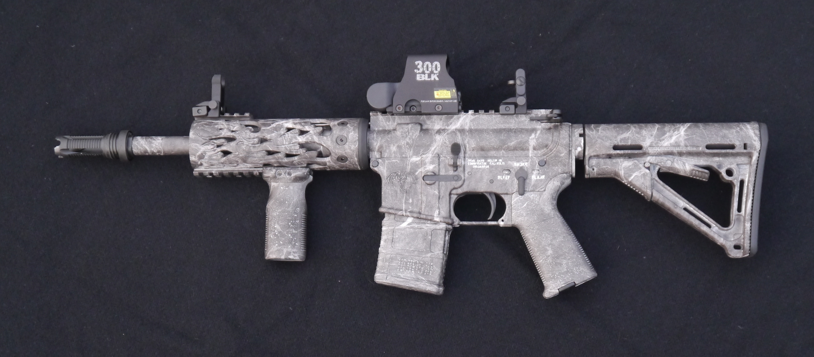 Custom 16" 300 Blackout, custom brake, two-stage trigger, YHM rail and sights, CAA stock, hydrodip finish.